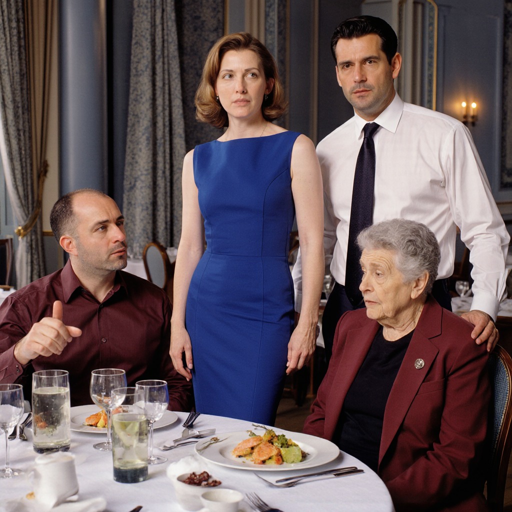 Я вошла. Зал полон людей, смеха, звона бокалов. Я медленно шла между столиками и вдруг увидела их. Павел сидел во главе стола, рядом Тамара Петровна в бордовом костюме, его сестра Марина с мужем. На столе пустые тарелки, бокалы, остатки десерта.