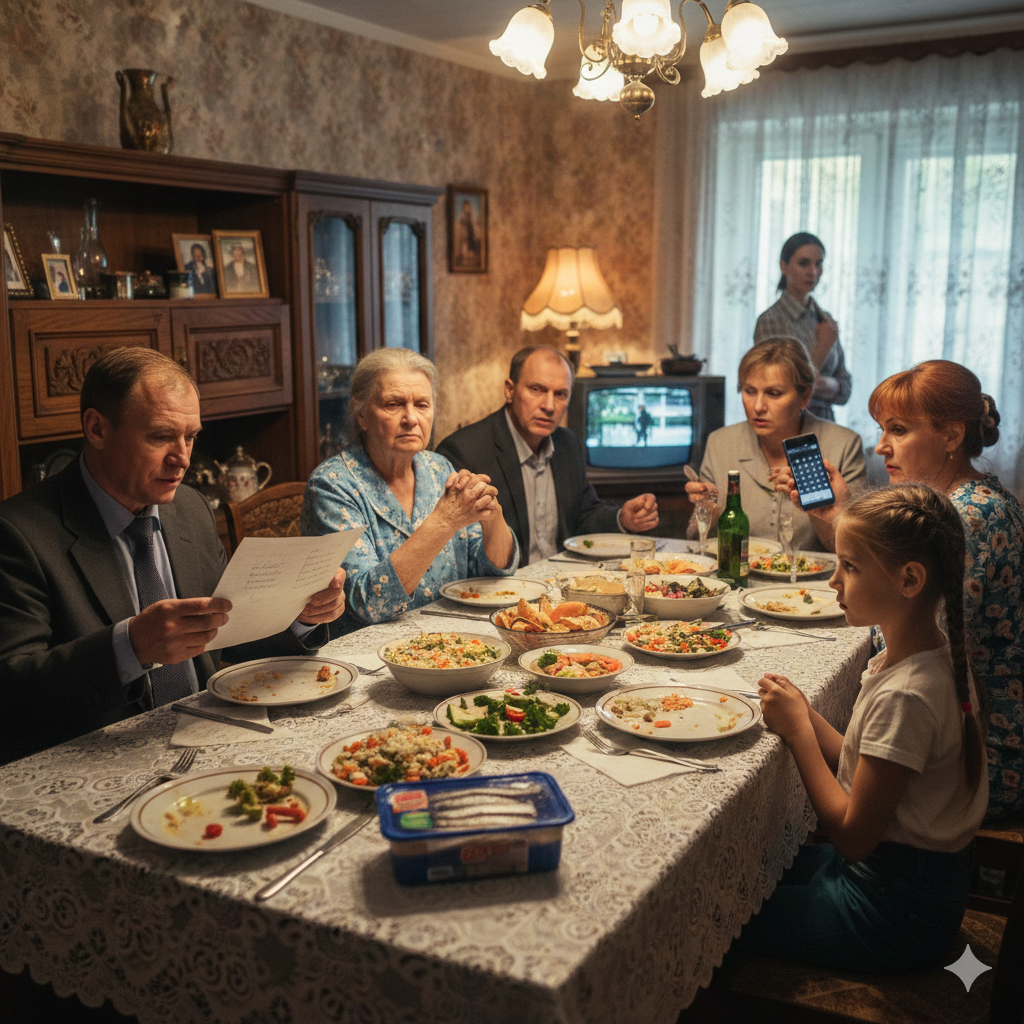 Зинаида Петровна кивнула и подцепила вилкой кусочек рыбы. За столом сидело четырнадцать человек — почти вся семья. Она пыталась вспомнить, когда в последний раз видела их всех вместе. На восьмидесятилетие? Нет, тогда младший сын с семьёй в Турцию улетел, путёвки горящие, не пропадать же. Может, на семьдесят пять. А может, и раньше — память уже подводила.