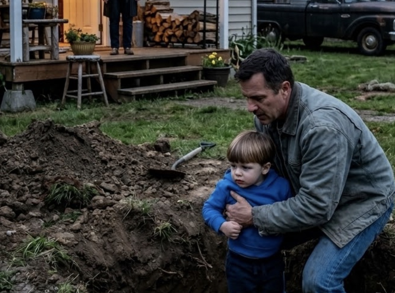 Через двор, в шести метрах, лежала вторая яма, покрытая потрескавшимися досками. Эрик завернул Эмму в свою тактическую куртку и понёс её к яме. Он должен был узнать правду. Отвинув доски, он лучом фонаря высветил ужас, который превратил его ярость в холодную, профессиональную сосредоточенность.