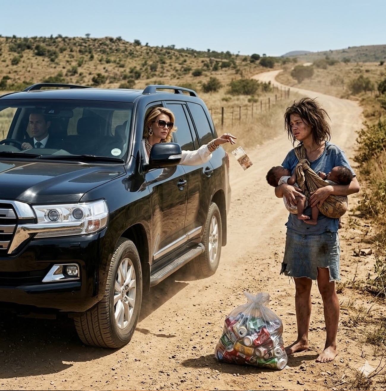 У ног Люсии стоял пластиковый пакет — наполовину наполненный смятыми банками и бутылками. Женщина, которой он когда-то клялся в вечной любви, теперь собирала вторсырьё, чтобы прокормить двух детей, о существовании которых он, похоже, даже не знал.